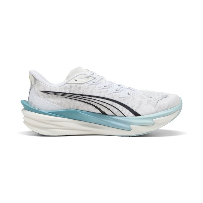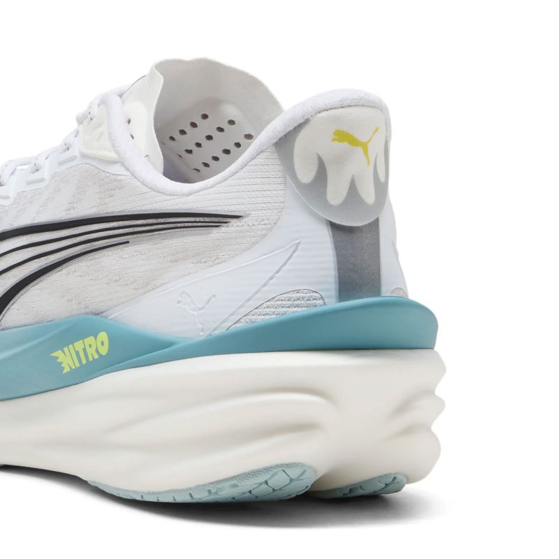 Deviate 4 isn't just fast – its too fast. 15g lighter than its predecessor, this high-performance shoe is built for runners who refuse to slow down. Featuring enhanced NITROFOAM™ technology for even better energy return, a breathable engineered mesh upper, and a carbon composite PWRPLATE, Deviate 4 gives you the edge you need to push through tempo runs or crush race day. Go further. Go faster. FeaturesThe upper of the shoes is made with at least 20% recycled materials. Details- Width: Regular- Toe type: Rounded- Fastener: Laces- Heel type: Flat- Cushioning: Max- PWRPLATE provides propulsion- PUMAGRIP outsole offers multi-surface traction- Pronation: NeutralNITROFOAM™Innovative nitrogen-infused foam technology for lightweight responsiveness and cushioning PWRPLATECarbon composite PWRPLATE engineered for propulsion while maintaining flexibility for fast training runs PUMAGRIPOutsole is made of durable rubber compound for multi-surface traction ART.NR. 31212309